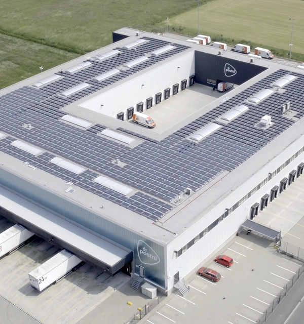 We willen dat onze sorteercentra zo min mogelijk impact hebben op het milieu. Daarvoor installeren we energiezuinige ledverlichting en verlagen we ons energieverbruik. En gemiddeld 50% van de elektriciteit voor onze pakkettensorteercentra wekken we zelf op met zonnepanelen op de daken.