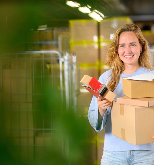 Verminder de 'lucht' in verpakkingen. Zo kunnen we meer vervoeren in 1 vrachtwagen of bestelbus en rijden we totaal minder kilometers. Dat scheelt CO2-uitstoot.
